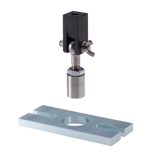 取っ手部分のねじを外し、そのねじ穴を使用してトルクスタンドに取り付けます。電動トルクスタンドの場合には中心出し治具が付属しているため、簡単に中心を合わせて設置することができ、より正確な測定を可能にします。